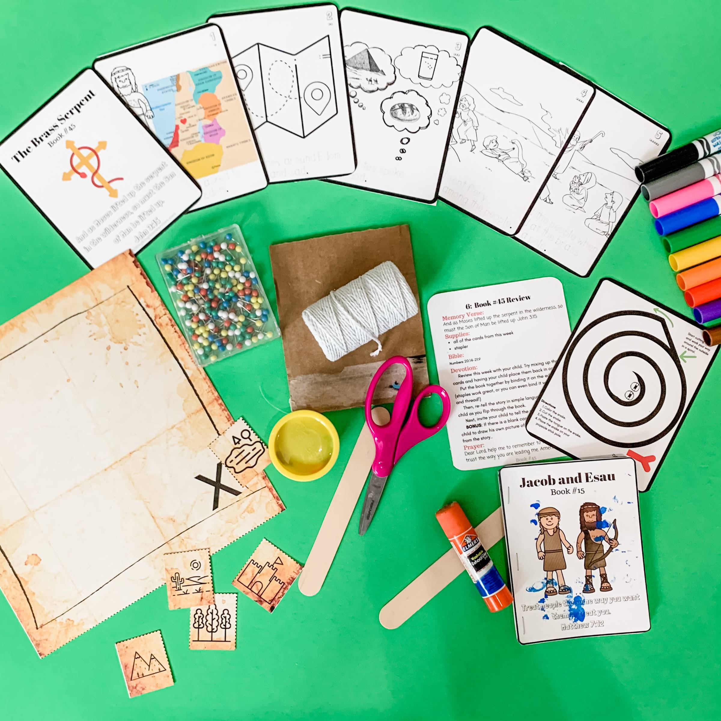 At the end of the week, you can bind the cards into a mini book and grow your library of Bible stories!